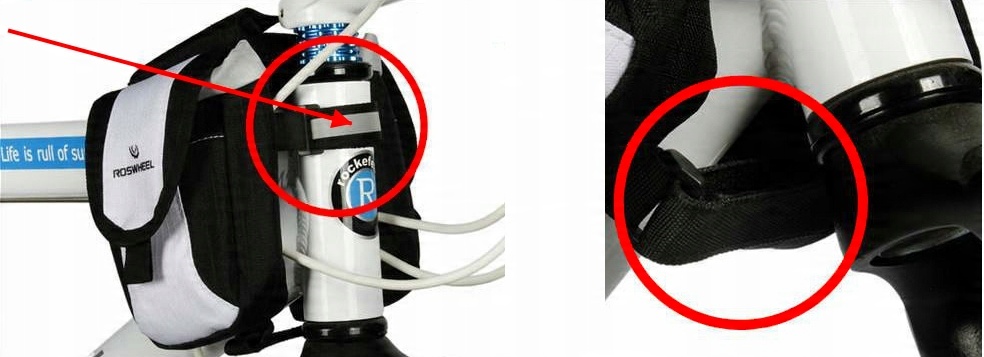 Сумка кріпиться у двох місцях - спереду до керма світловідбиваючим ременем, який зробить вас ще помітнішими на дорозі, а знизу регульованим ременем, щоб ви могли прикріпити її до рами різних розмірів!