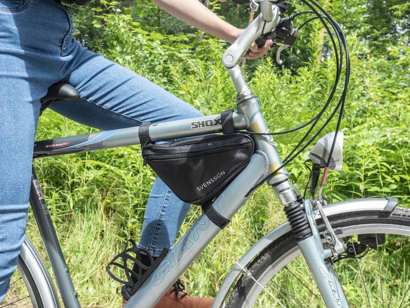 Зручна велосипедна сумка з матеріалу стійкий до води. Ергономічна форма дозволяє встановити сумку на раму, що забезпечує хороший доступ до її внутрішньої частини. Застібка-блискавка забезпечує швидкий доступ до однієї просторої кишені, в якій ми можемо зберігати, наприклад, речі, необхідні для подорожі на велосипеді. Сумка кріпиться до рами за допомогою ремінців на міцних липучках.