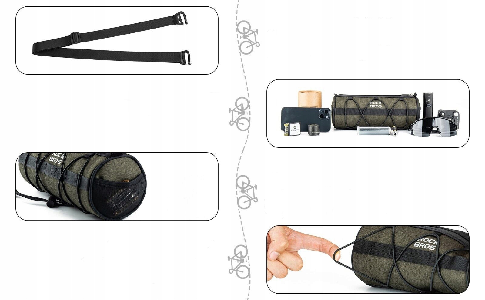 Відповідна місткість 2 л: циліндрична форма забезпечує велику місткість, яку можна збільшити до 2 л, де ви можете зберігати ліхтарі, насоси, інструменти та інші предмети, необхідні під час їзди, щоб зробити вашу подорож комфортною. Сумка відкривається не тільки за допомогою верхньої блискавки для зберігання речей, але й за допомогою бічних пряжок для зберігання речей з обох сторін.