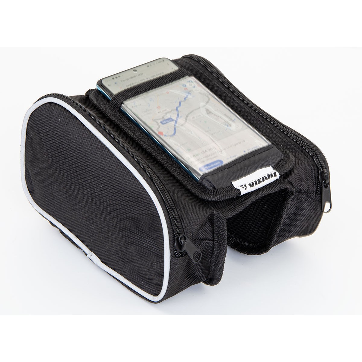 СУМКА НА ВЕЛОСИПЕДНІЙ РАМІ З ЧОХЛОМ ДЛЯ ТЕЛЕФОНУ стане ідеальним доповненням до вашого велосипеда, завдяки якому ви подорожуватимете невідомими місцями, не боячись заблукати. Після кріплення сумки на раму велосипеда в центральному місці буде прозора кишеня - чохол, який може бути, наприклад, відділенням для телефону. Кишеня кріпиться до сумки на липучці, ви можете розстібнути її в будь-який момент. Дві бічні кишені на блискавці ідеально підходять для зберігання ключів, документів, невеликого гаманця або серветок тощо. Кишені сумки оздоблені світловідбиваючими кантами, що робить вас більш помітними на дорозі. СУМКА НА ВЕЛОСИПЕДНІЙ РАМІ З ЧОХЛОМ ДЛЯ ТЕЛЕФОНУ SAKWA виготовлена з міцних матеріалів, а кожен елемент укріплений скотчем товщиною 2 см, що гарантує довговічність протягом багатьох сезонів. Не відкладайте покупку, Ви залишитеся задоволені!