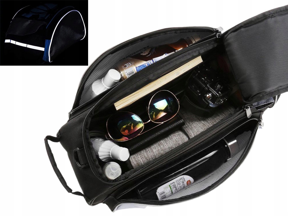 Сумка оброблена світловідбиваючою смугою для підвищення безпеки під час подорожі. Універсальна сумка підходить для більшості типів багажників, застібається на регульовані пряжки.