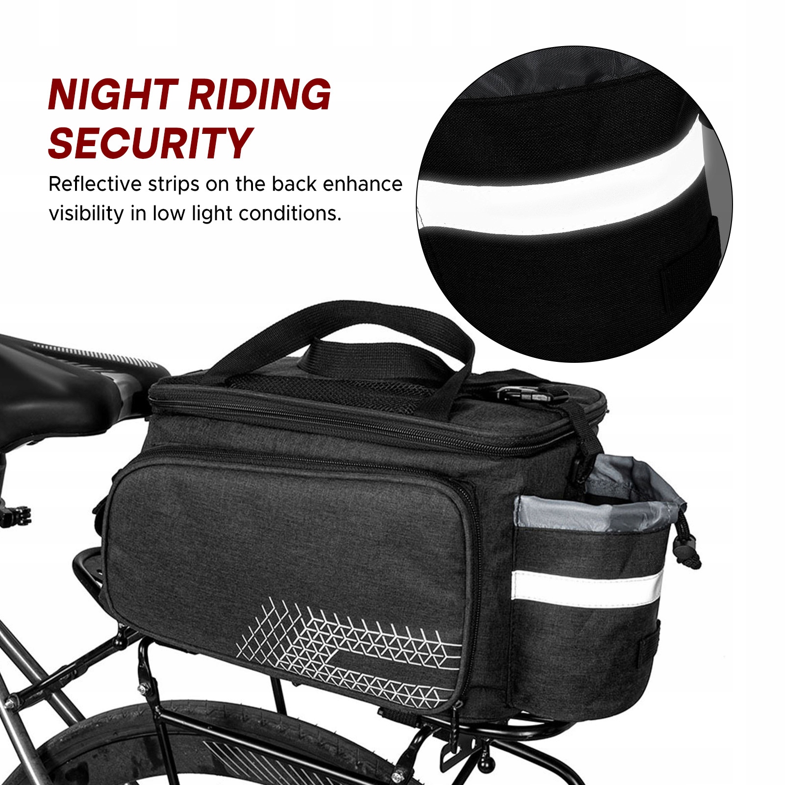 1. Багатофункціональний дизайн: поєднує в собі можливість носити в руці, носити на плечі і кріпити на велосипеді. Виготовлений із міцного поліестеру, підходить для різноманітних умов їзди.