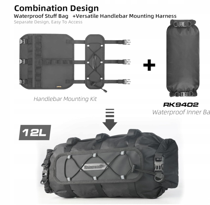 - Метод зберігання в рулонах дозволяє вільно зменшувати розмір відповідно до кількості речей, які ви носите. Максимальна корисна ємність становить близько 12 л, що підходить для їзди на довгі дистанції по легкому бездоріжжю.