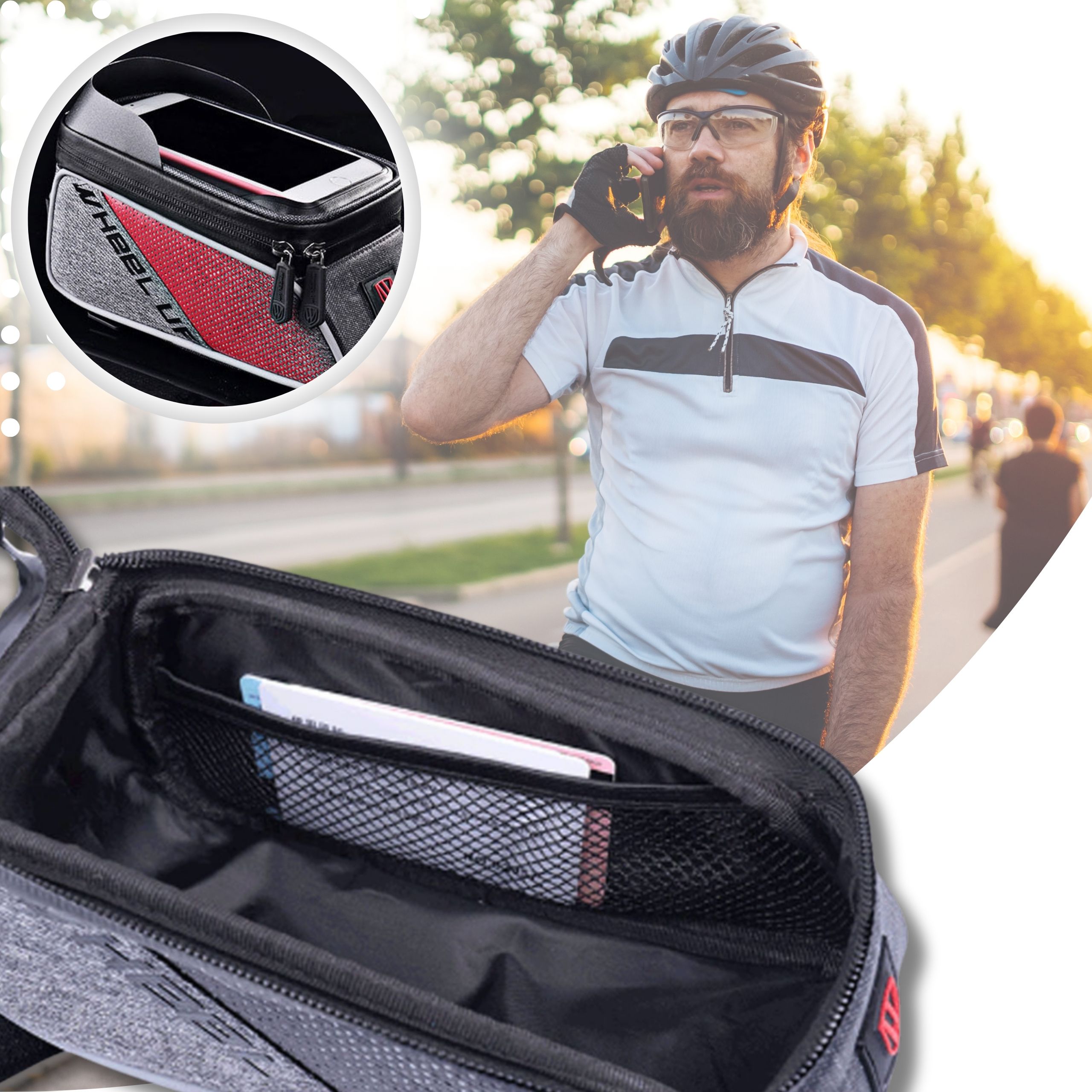 …це простора труба з кришкою для смартфона. Це абсолютно нова якість використання телефону під час їзди на велосипеді. Неважливо, збираєтеся ви в неквапливу подорож чи подорож на велосипеді, щоб побити рекорди часу – велосипедна сумка Wheel-Up значно полегшить вам використання сенсорного телефону під час їзди, а також ідеально захистить його від будь-яких механічних пошкоджень.