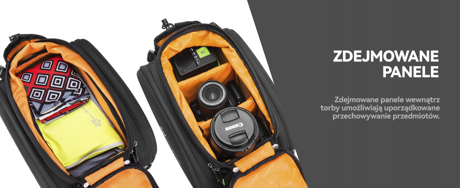 - 【Внутрішня кишеня】Внутрішня частина сумки для велосипеда розділена двома рухомими перегородками з поліестеру, за якими можна краще організувати та розмістити ваші речі.