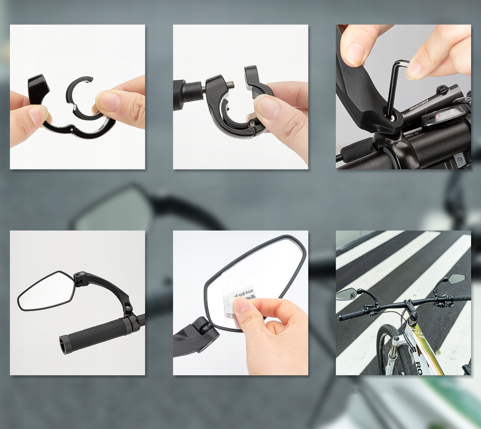 Велосипедні дзеркала заднього виду можна встановити зліва та справа круглого керма. Щоб установити, скористайтеся шестигранним ключем (у комплекті), а потім затягніть, щоб забезпечити надійне замикання.
