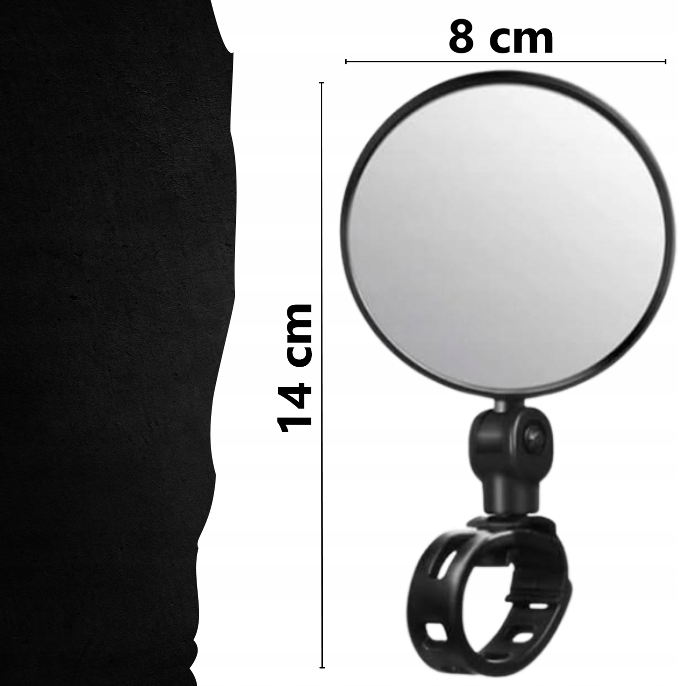 Дзеркало можна повертати та нахиляти в будь-якому напрямку, дозволяючи налаштувати його відповідно до свого положення на велосипеді.
