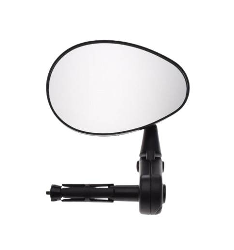 велосипедне дзеркало заднього виду, кріпиться на гнучке пластикове з'єднання, кріпиться в кермо, повертається на 360 градусів, чорного кольору, можна використовувати як зліва, так і справа