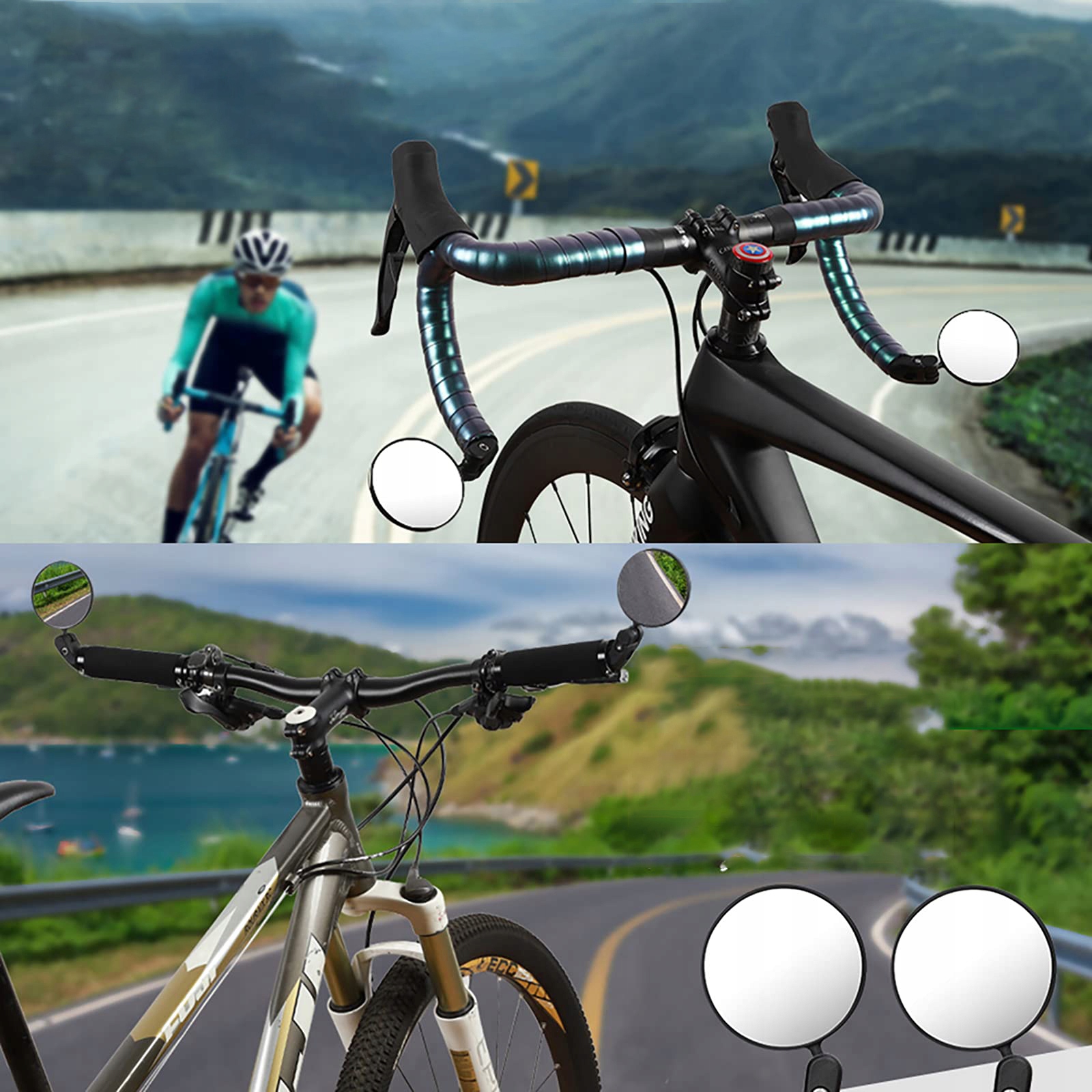 1. Універсальна конструкція: Велосипедне дзеркало в кінці керма можна встановити з лівої та правої сторони плоского керма або падіння керма. Підходить до керма в діапазоні 17,4 мм ~ 22 мм (внутрішній діаметр). Ідеально підходить для дорожніх велосипедів, гірських велосипедів, міських велосипедів, електричних велосипедів тощо. Компактна конструкція робить його стійким до ударів, а складна конструкція дозволяє складати його, коли зустрічається кермо, виготовлене з корпусу для об'єктива ABS, акрилової лінзи та ПК високої твердості. Порівняно з традиційною поверхнею скляного дзеркала, воно має довше життя і безпечніше.