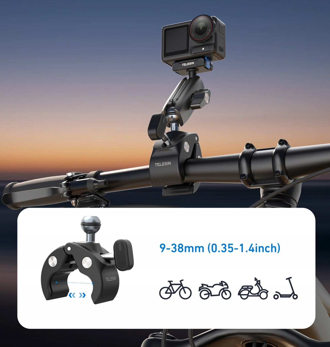 ✅ Завдяки цьому ручка TELESIN добре працюватиме як на мотокросовій трасі, так і в повсякденному відеоблозі.