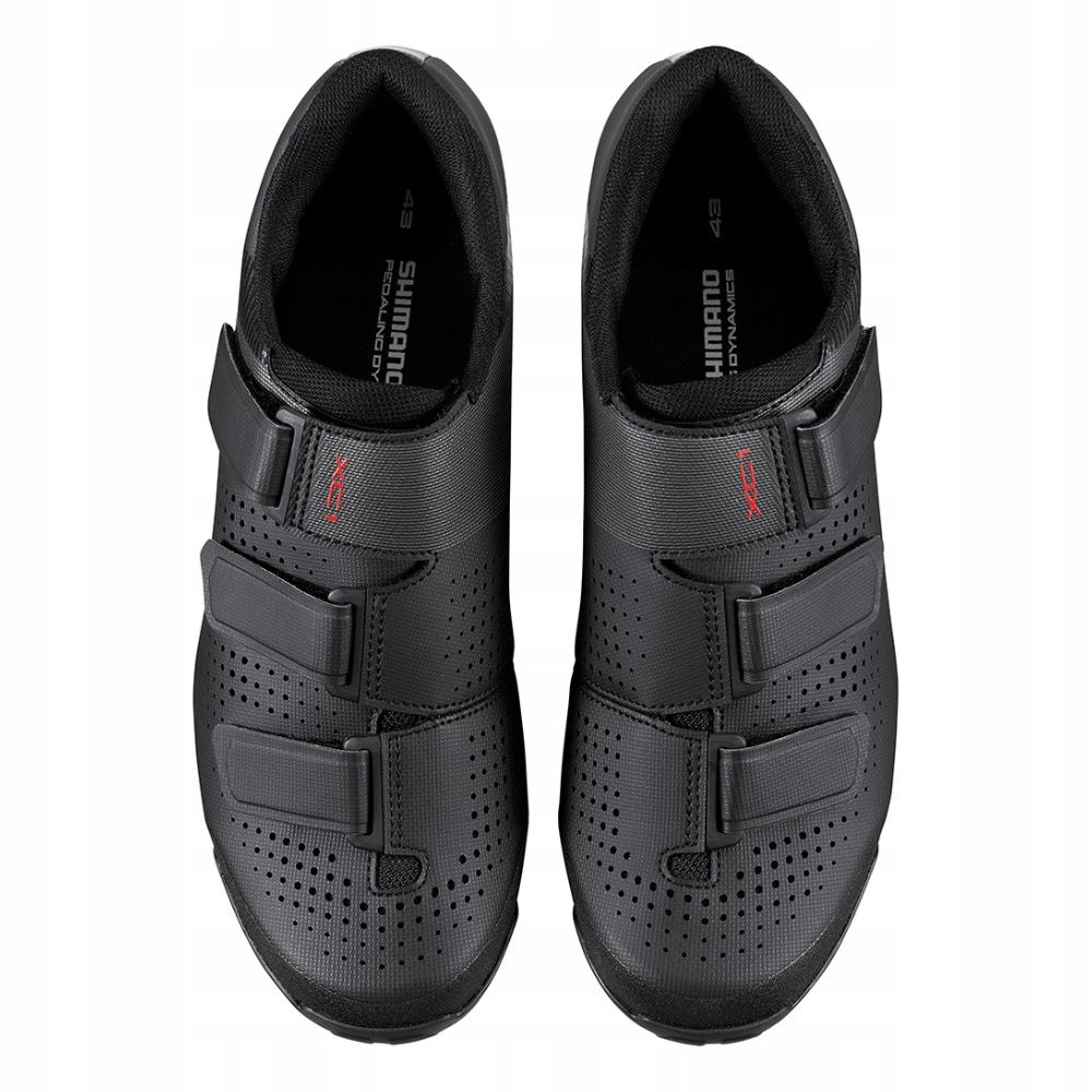 Shimano SH XC100 це високоефективне взуття для гонок XC MTB, яке гарантує високу якість і чудовий дизайн. Завдяки цілісній конструкції верху кількість шарів, що перекриваються, значно менша, що забезпечує ідеальну посадку та малу вагу. Покриття з синтетичної шкіри з сітчастою структурою ідеально прилягає до стопи. Завдяки легкій нейлоновій підошві, посиленій скловолокном, передача потужності на ще вищому рівні, а її гумова частина з гоночним протектором забезпечує стабільний контакт з педалями та зчеплення під час ходьби. Розташований всередину ремінь зменшує навантаження на найвищу точку тильної частини стопи та забезпечує ідеальне регулювання.