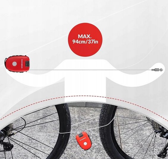 Довго -зв’язок 94 см дозволяє велосипеда бути закріпленим свободою. Ви можете закріпити його за рамою або колесом - і не тільки до підставки, але і допису, решітки або ліхтаря. Кабель має достатню довжину, щоб прикріпити велосипед разом з іншими елементами, наприклад. шолом або сумка. Це ідеальне рішення, якщо ви часто змінюєте місце для паркування велосипеда.