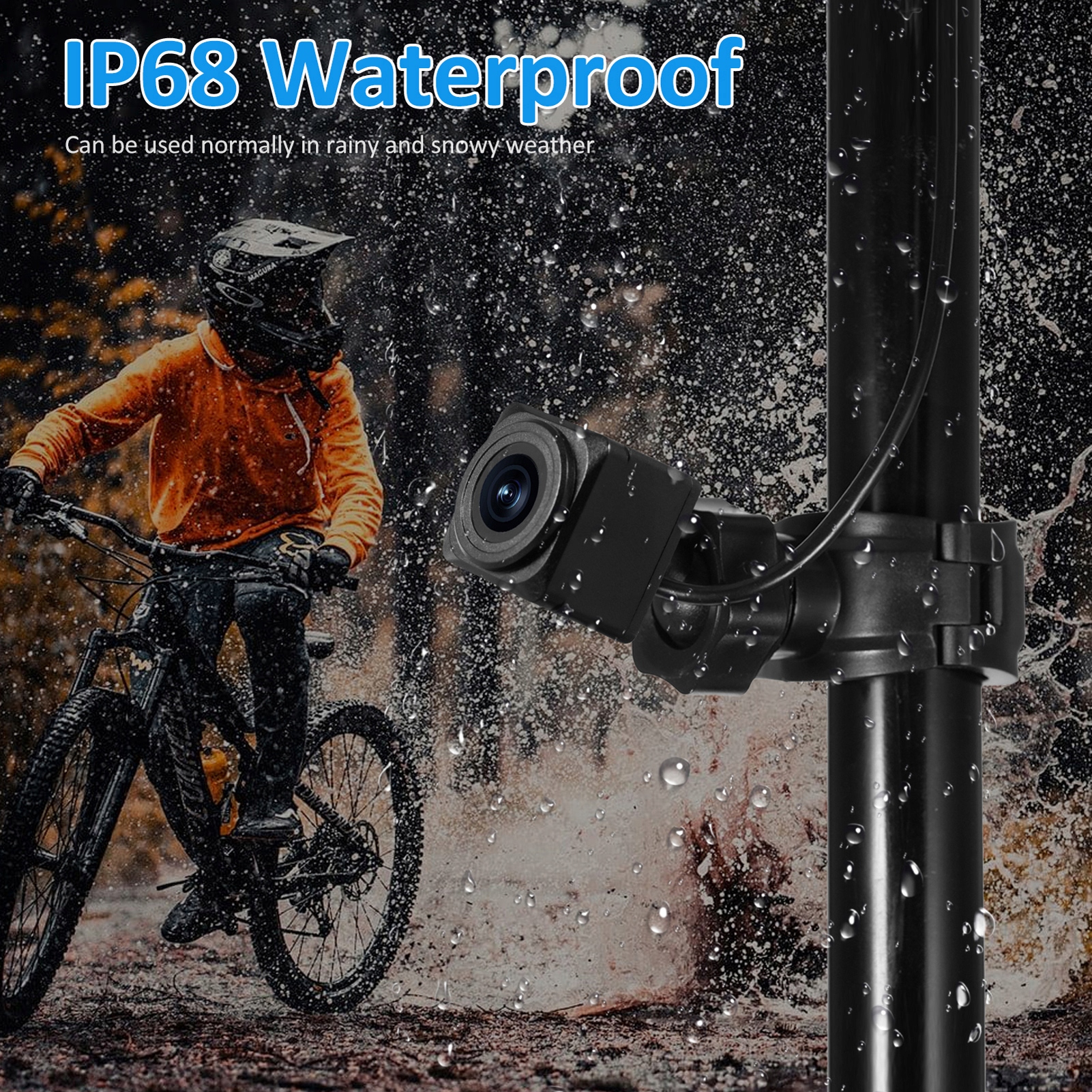 2. Широкий кут огляду \ U0026AMP; Водонепроникна конструкція: Наша зворотна велосипедна камера оснащена об'єктивом ширини 110 °, забезпечуючи всебічний вигляд усього позаду вас. Кронштейн може обертати 360 °, що дозволяє адаптуватися під найкращим кутом водіння. Крім того, завдяки водонепроникному стандарту IP68, ця камера підходить для різних гострого та крайнього клімату.