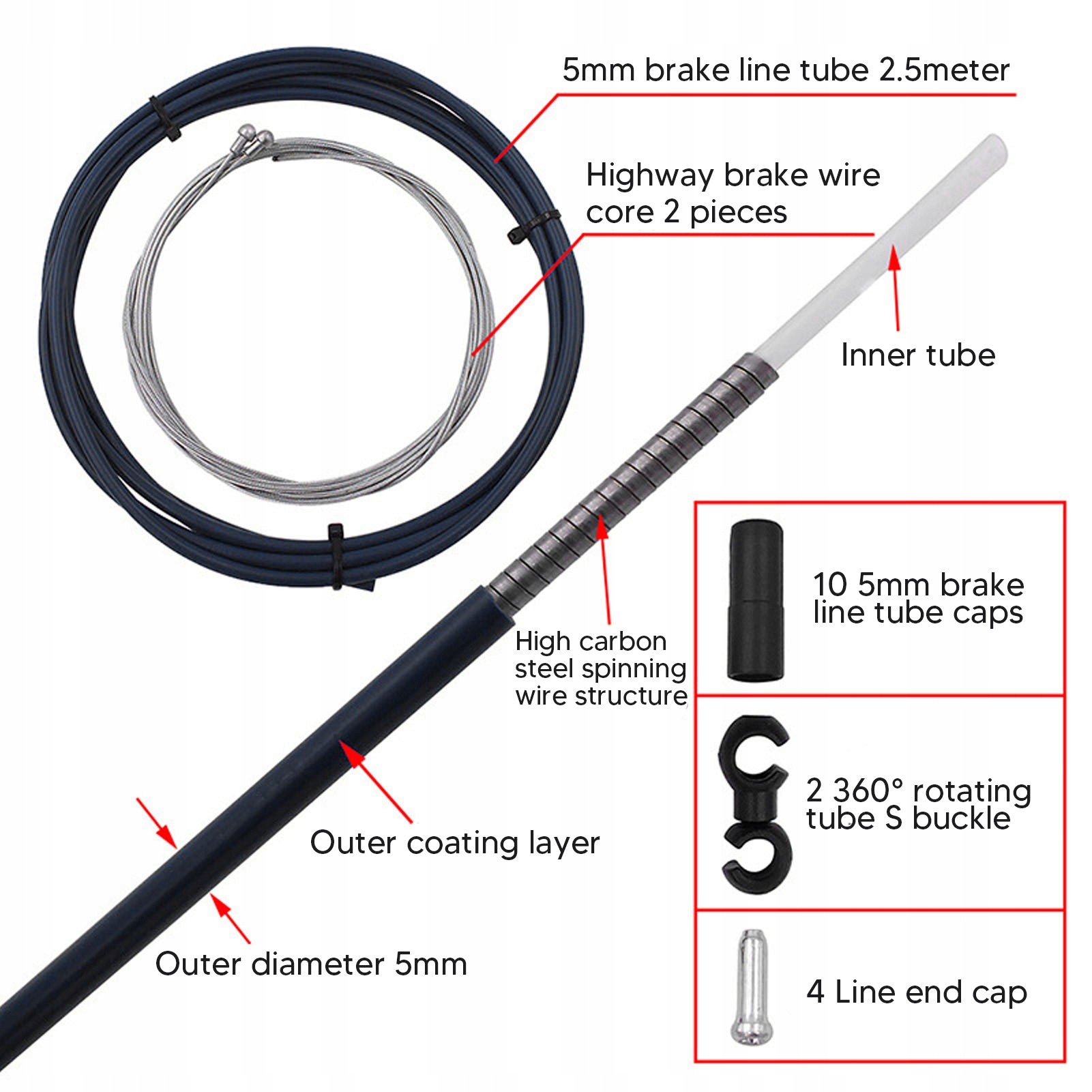 1. Список пакетів: набір велосипедних гальм включає 1 гальмівну трубку, 2 сердечники, 10 ковпачків для труб, 4 брелоки, 2 пряжки для трубок, 2 кріплення для гальм