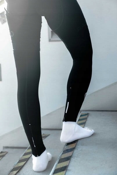 Утеплені ніжки ідеально прилягають до тіла. Плоскі та гнучкі шви додають комфорту під час тривалих тренувань. Верхня частина штанин оброблена еластичною стрічкою з частинками силікону, завдяки чому матеріал не зміщується, а ноги тримаються на одному місці. У нижній частині використовується блискавка YKK для полегшення одягання ніжок. Крім того, він має замок і не розсувається. Для кращої видимості використовуються світловідбиваючі елементи.