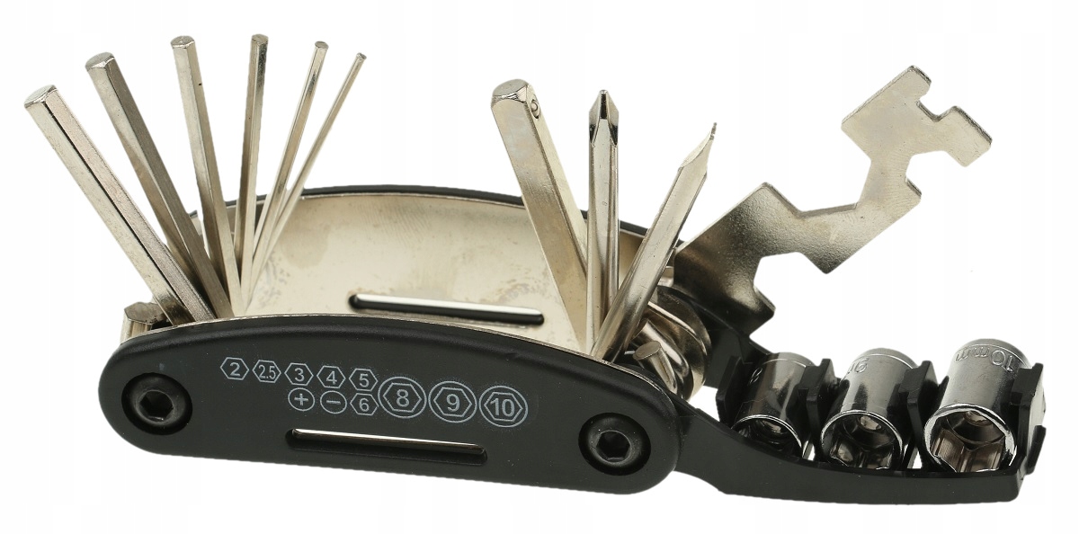 - Набір шестигранний, ріжковий та хрестоподібний ключі + основні головки, найбільш корисні під час ремонту велосипеда.