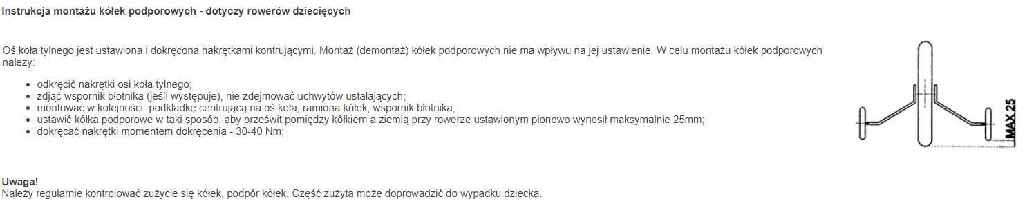 Бічні колеса для дитячого велосипеда з діаметром коліс: 12'', 14'', 16'', 18'', 20''. Колеса забезпечують користувачеві чудову стійкість, допомагаючи для навчання їзді на велосипеді.