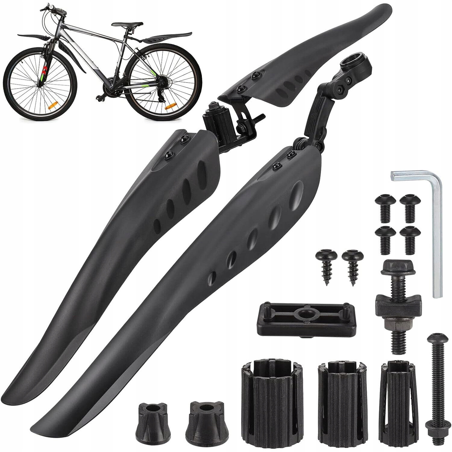 【Гнучкий дизайн】: Наші велосипедні крила відповідають різним горі, дорозі, туристі, гонках та інших велосипедах. Задні крила мають регульований кут нахилу, що дозволяє адаптувати їх до індивідуальних потреб.