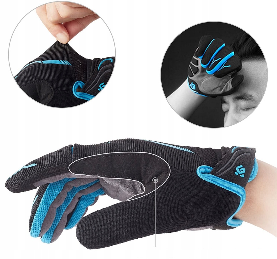 - задня частина велосипедних рукавичок зроблена з еластичної гумки дихаючий матеріал, який виділяє тепло. Це дозволяє поту випаровуватися, забезпечуючи комфортне носіння та сухість рук.