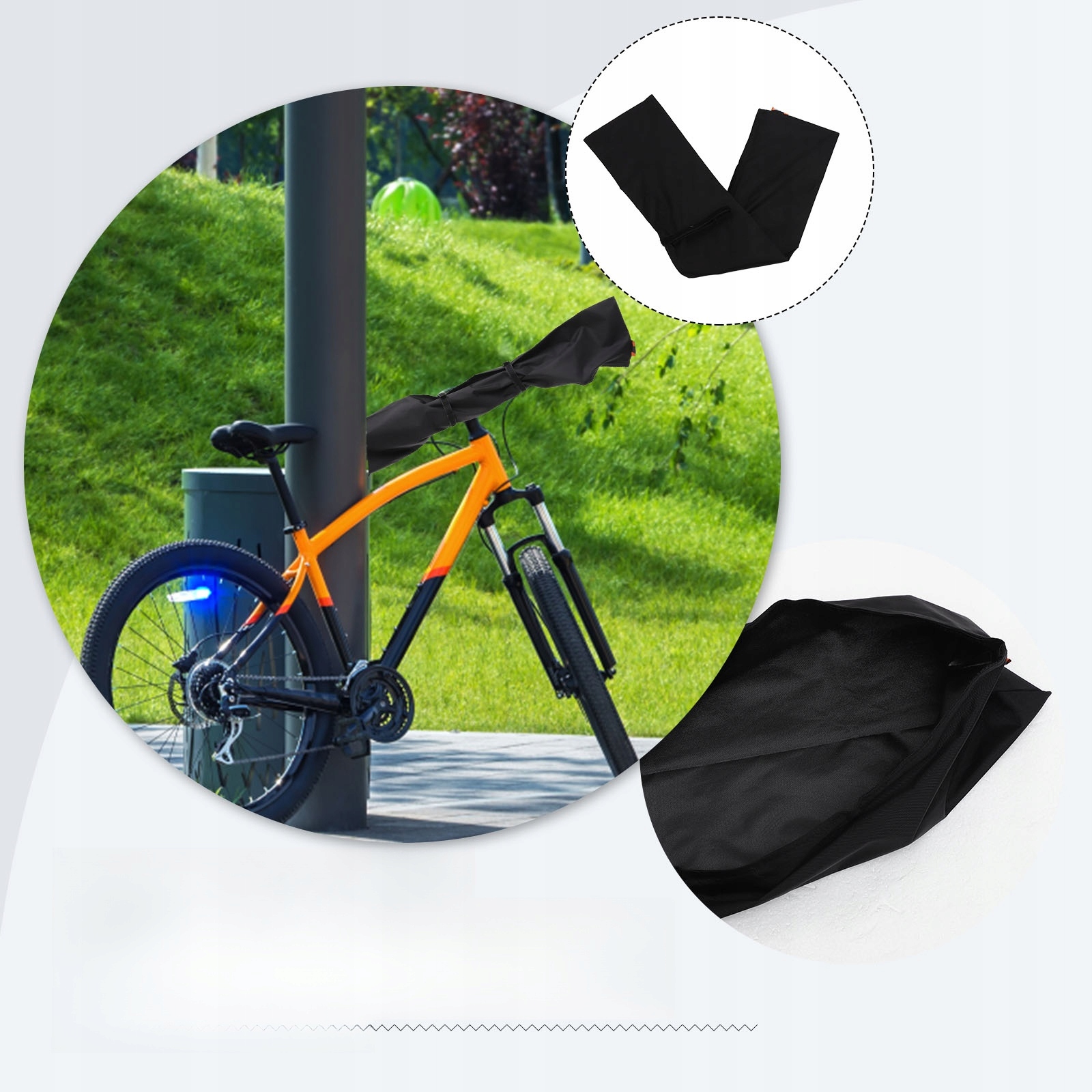 ✅Великий і достатньо довгий, може обернути подвійне кріплення для велосипеда, або липкий ремінь може добре зафіксувати чохол, запобігаючи вислизанню кріплень для велосипеда.