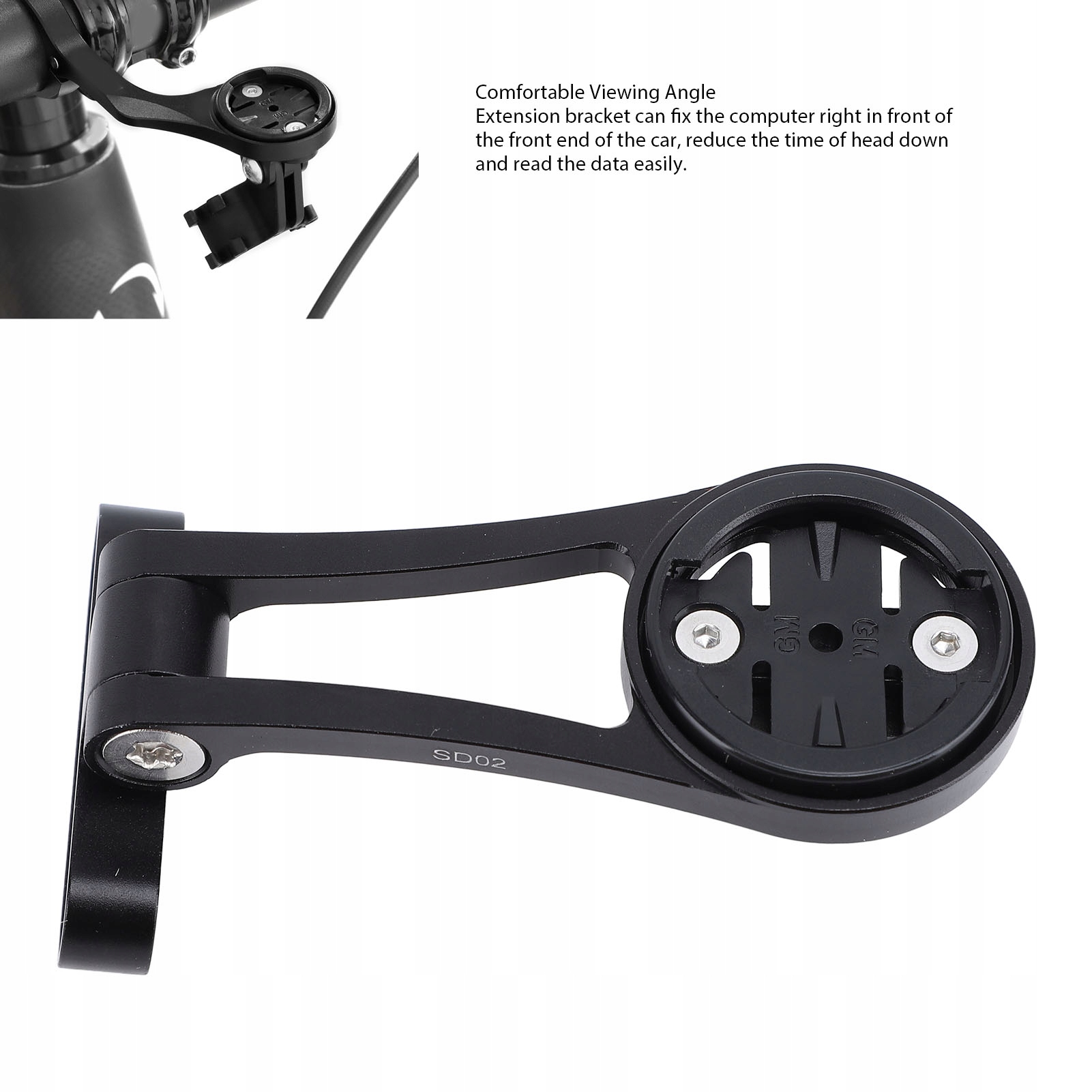 5. Ергономічний кут огляду: спритно розроблена попередня частина руки розміщує велосипедний комп'ютер у оптимальній лінії зору, значно зменшуючи необхідність виглядати в dó. Це забезпечує швидку та чітку видимість даних під час руху з великою швидкістю, збільшуючи загальний досвід велосипедів.