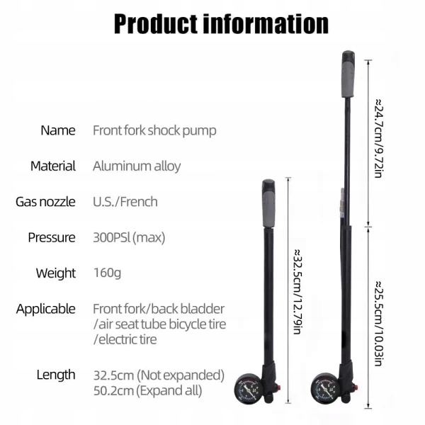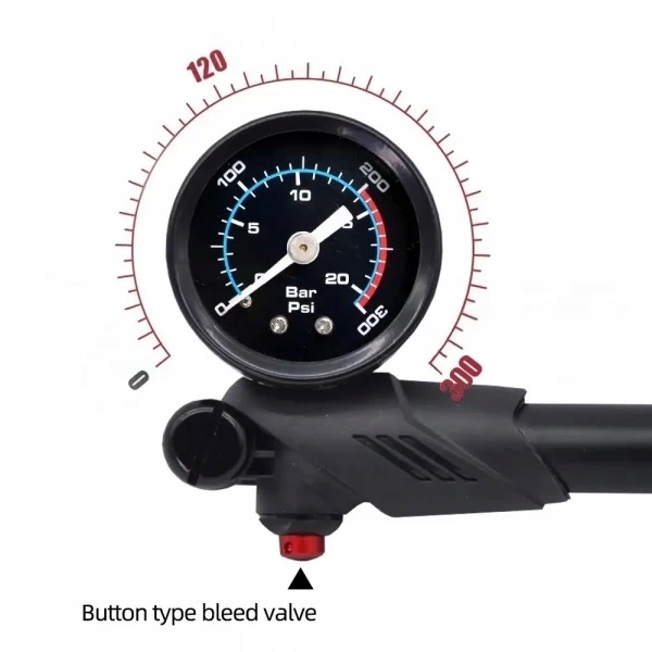 Накачайте до оптимального тиску: насос швидко й легко накачує велосипедні амортизатори до рекомендованого тиску, забезпечуючи плавну та комфортну їзду. Максимальний тиск 300 psi