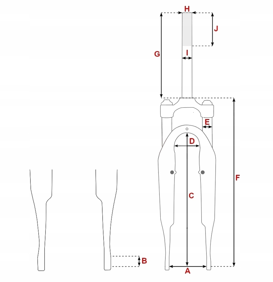 e - зовнішній діаметр верхньої гомілки, що працює 28 мм