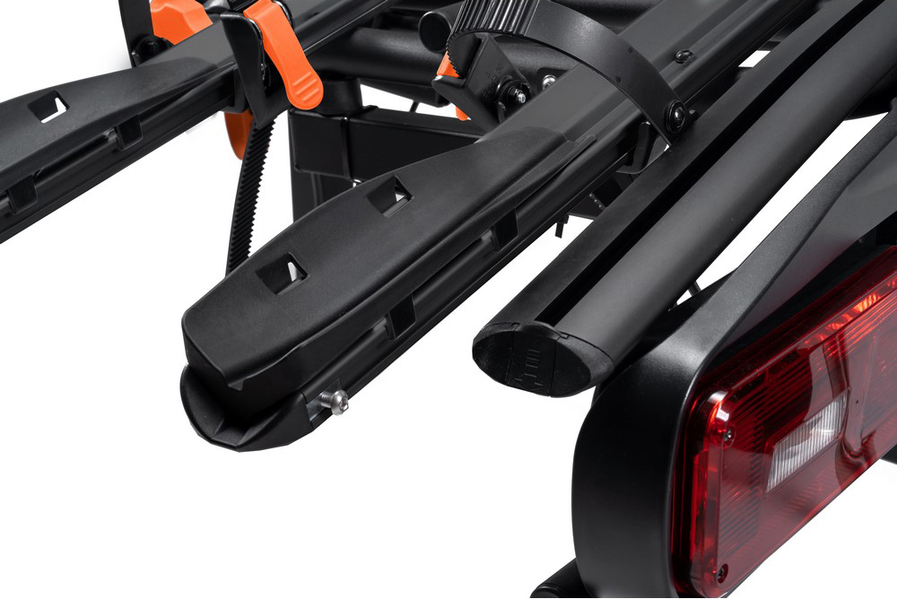 велосипедні колеса прикріплені до платформи за допомогою нових, довших та армованих передач з модернізованим та модернізованим та Покращена система швидкого затискача. Полегшити встановлення густих шин велосипедів і додатково захищають велосипед та його положення на багажнику. 100 мм - 4 - 4 ") із збільшенням діапазону коригування для відстані навіть 130 см . Це дозволяє встановлювати велосипеди різних розмірів, як більші, так і маленькі.
