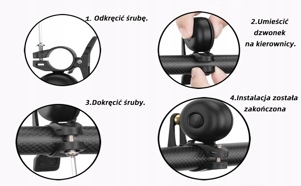 Велосипедний дзвінок легко переносити та встановлювати. Відповідає внутрішньому діаметру труби керма на велосипедах діаметром 21 мм - 23 мм. Вам потрібна лише 1 хвилина, щоб завершити встановлення за допомогою викрутки.
