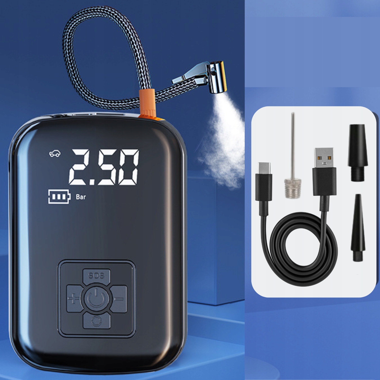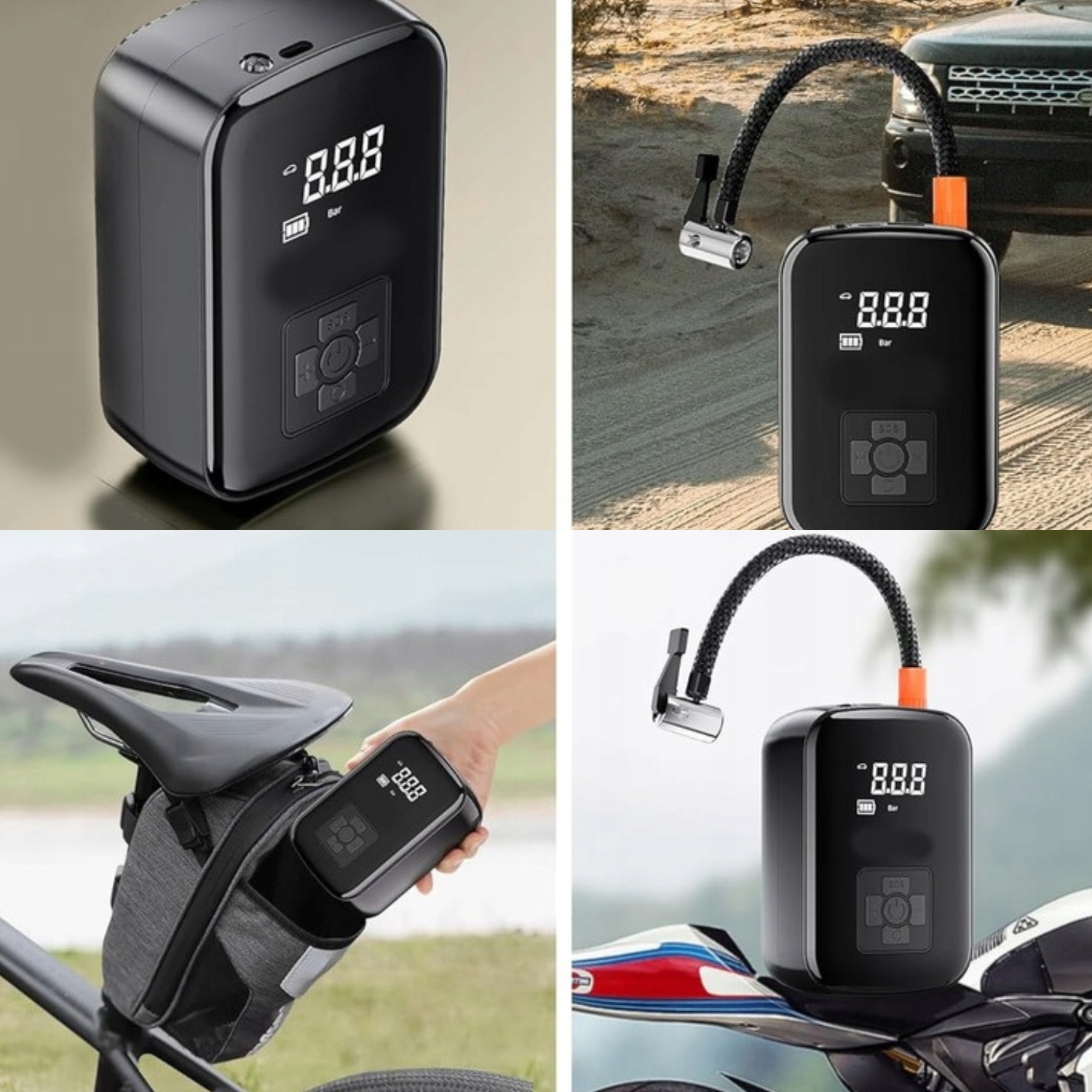 - Компактний і водночас надзвичайно ефективний компресор є обов'язковим для кожного водія та активного користувача спортивного спорядження. Завдяки вбудованій батареї та цифровому РК-дисплею пристрій гарантує зручне та точне накачування в будь-якій ситуації – від автомобільних шин, велосипедних шин до м’ячів і матраців.