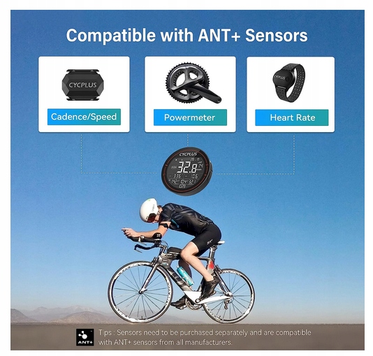 Бездротовий велокомп’ютер/велокомп’ютер із GPS від CYCPLUS, модель M2 із підключенням Bluetooth і Ant+.