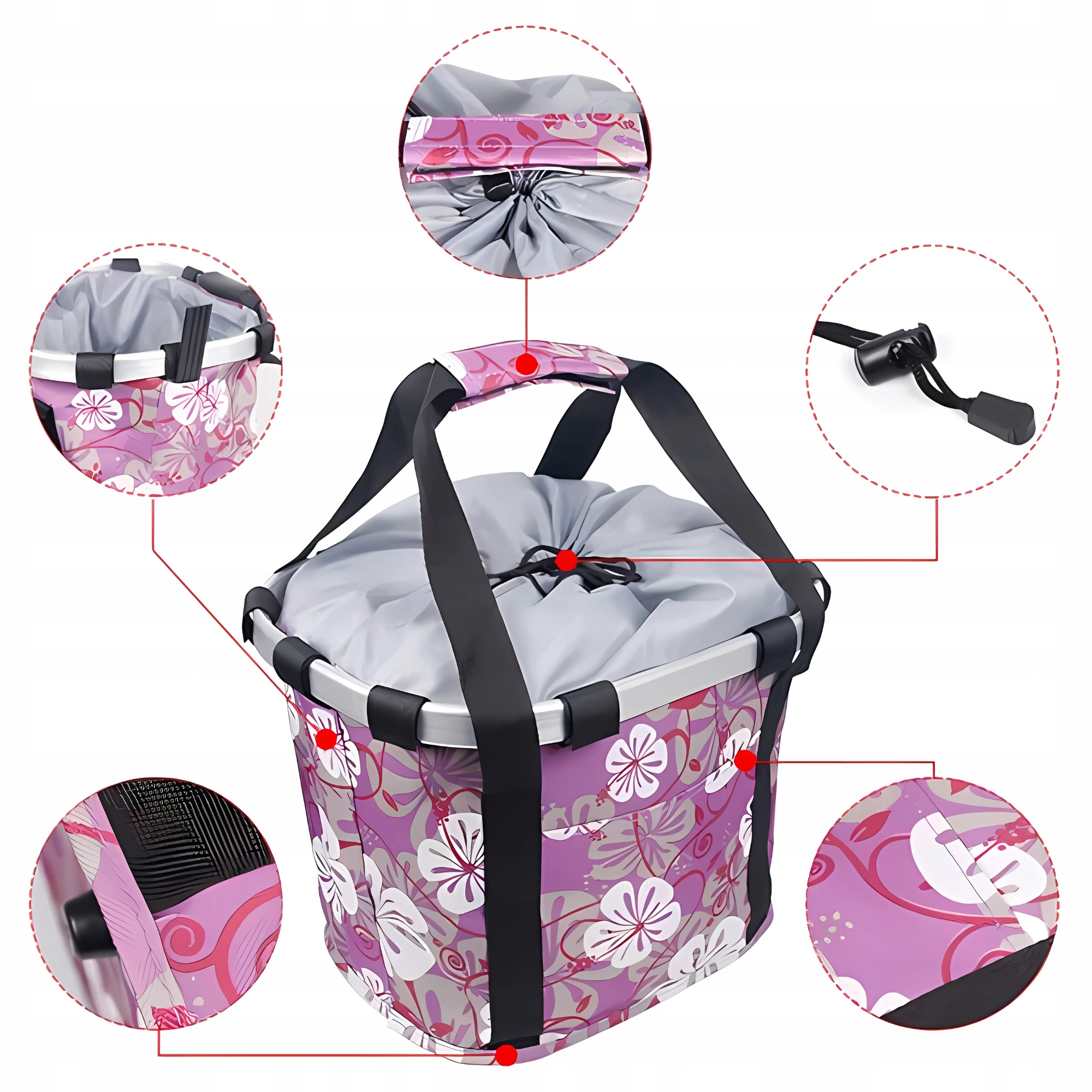 передня сумка для велосипедного кошика для рожевого рульового колеса
