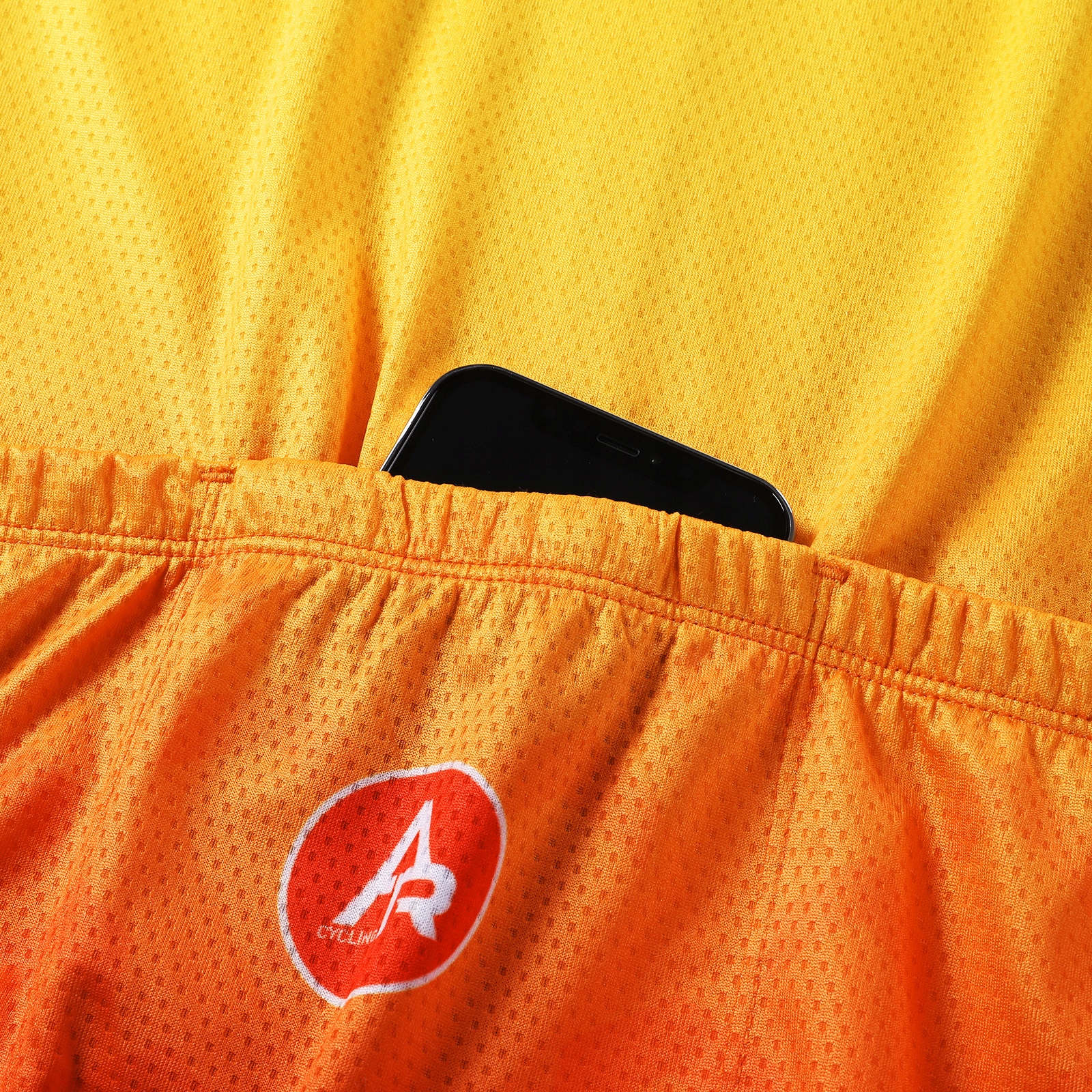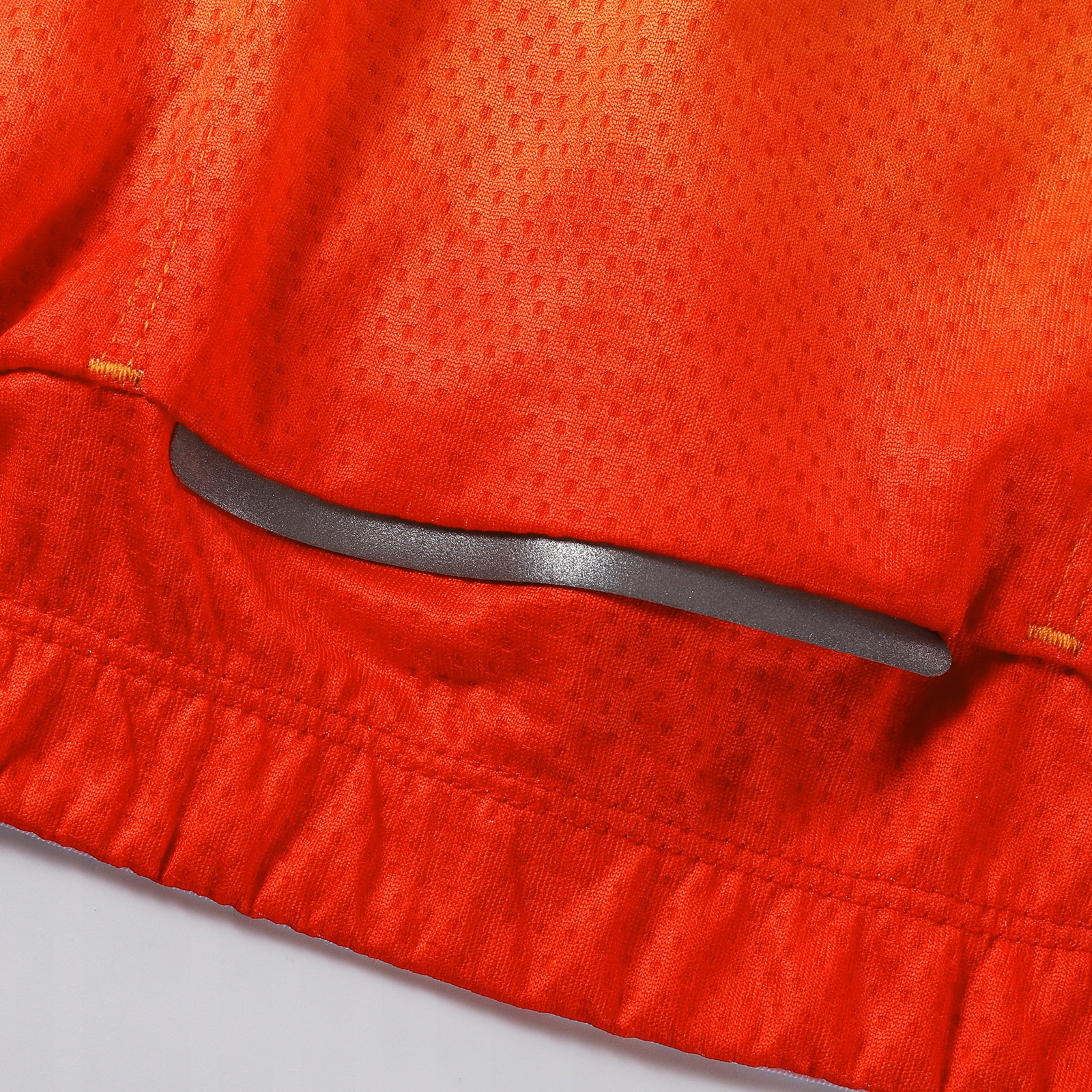 Профільна конструкція збільшує відповідність анатомічної форми тіла, усуваючи потертості та дискомфорт. 4 Система вдосконаленої циркуляції повітря:тканина, покрита мікро -отвори (3 мм) та спеціально розроблений повітряний канал, покращує дихання та прискорення вологи. Це гарантує швидке висихання та свіжість протягом дня.