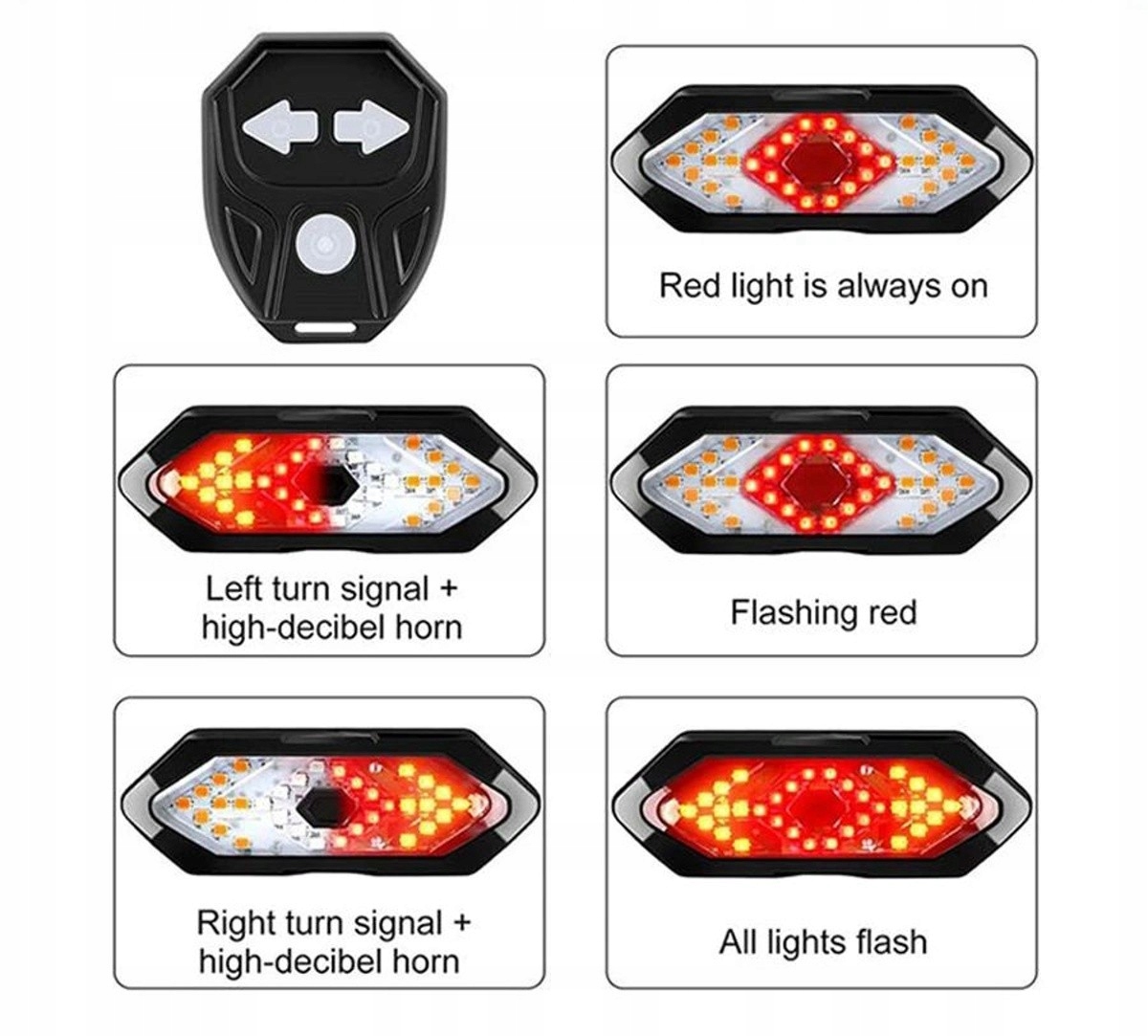 Світлодіодний велосипедний ліхтар з дистанційним керуванням: поворотники, стоп-сигнали та габаритні вогні USB