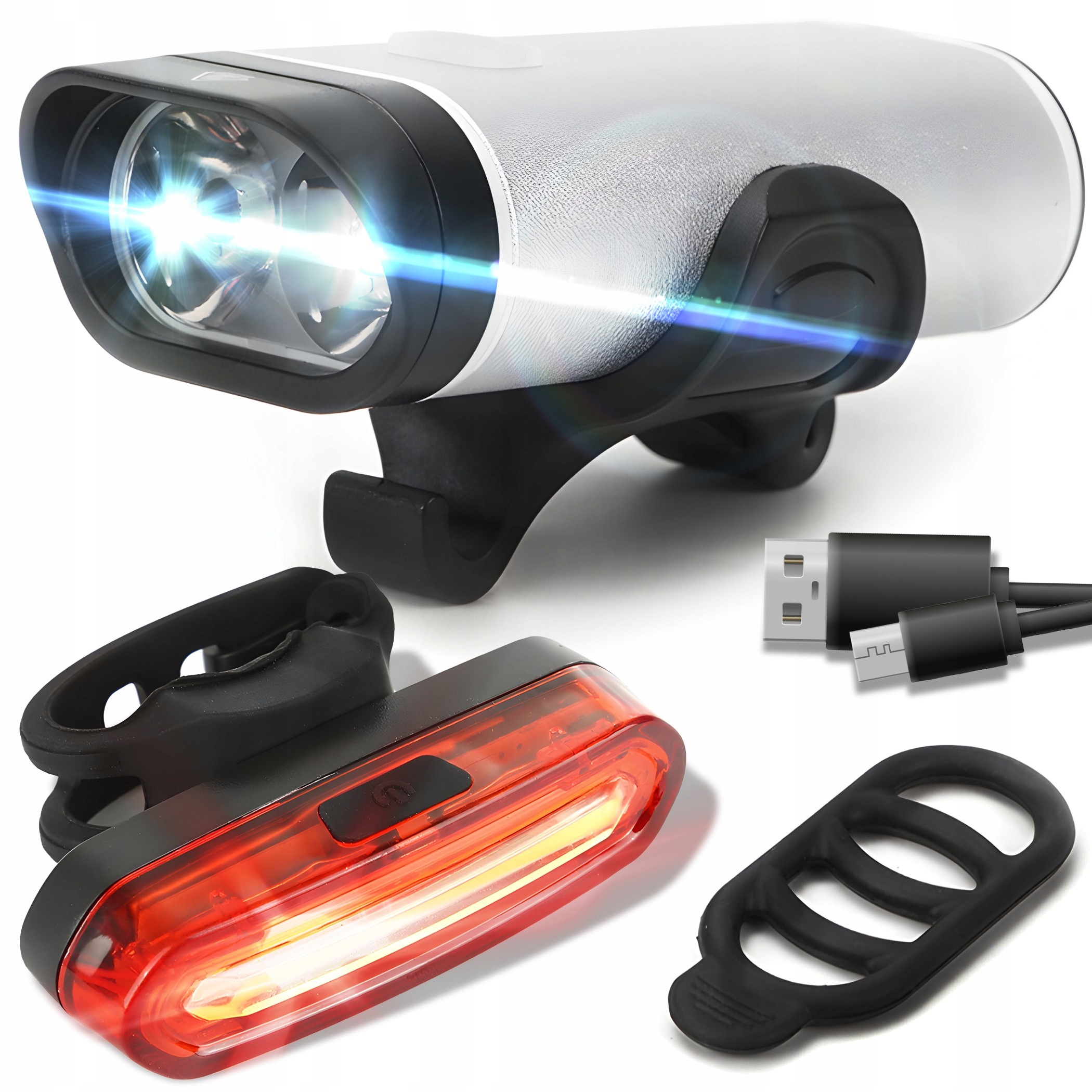 Високоякісний велосипедний ліхтар, що заряджається від USB. Пристрій підвищує безпеку велосипедистів під час їзди. Завдяки використанню потужних світлодіодів ви стаєте помітнішими на дорозі.Передні та задні велосипедні ліхтарі — чудовий спосіб підвищити вашу безпеку. Освітлення зробить вас ще впевненіше та безпечніше на дорозі.