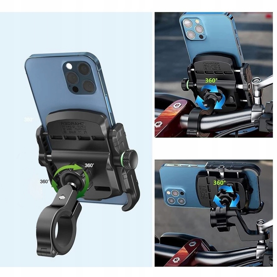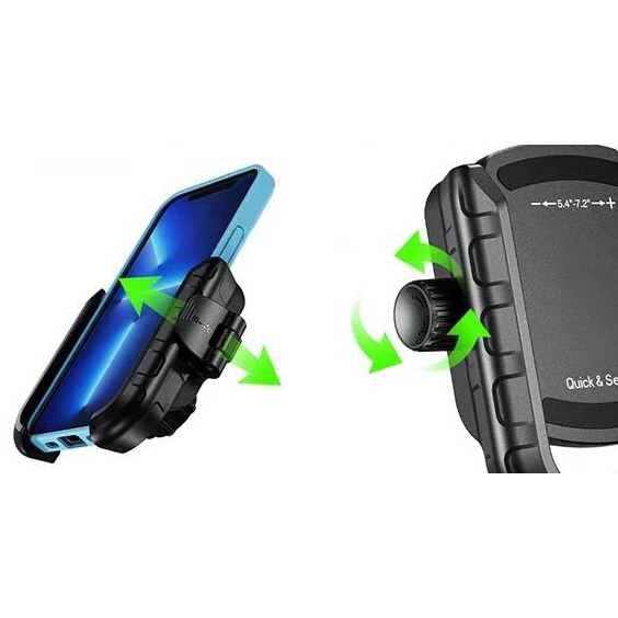Надзвичайно міцний тримач для мотоцикла з міцного пластику з металевим кріпленням. Він надзвичайно міцний і забезпечує безпеку вашого телефону. Підходить для більшості телефонів на ринку завдяки дуже широкому діапазону регулювань. Губки тримача мають спеціальний профіль, щоб не тільки не закривати зарядний порт, але й надійно тримати телефон.