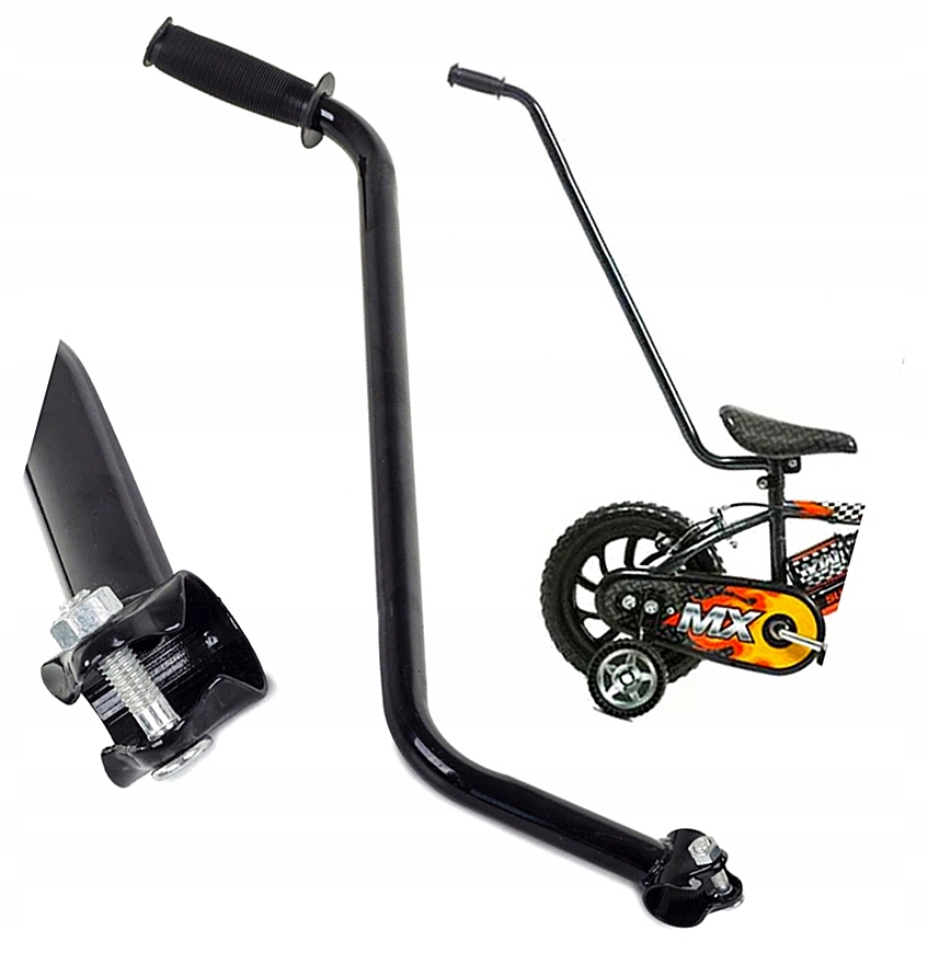 Він встановлений під сідлом велосипеда. Має гумову ручку, завдяки якій ви можете безпечно вести дитину на велосипеді.