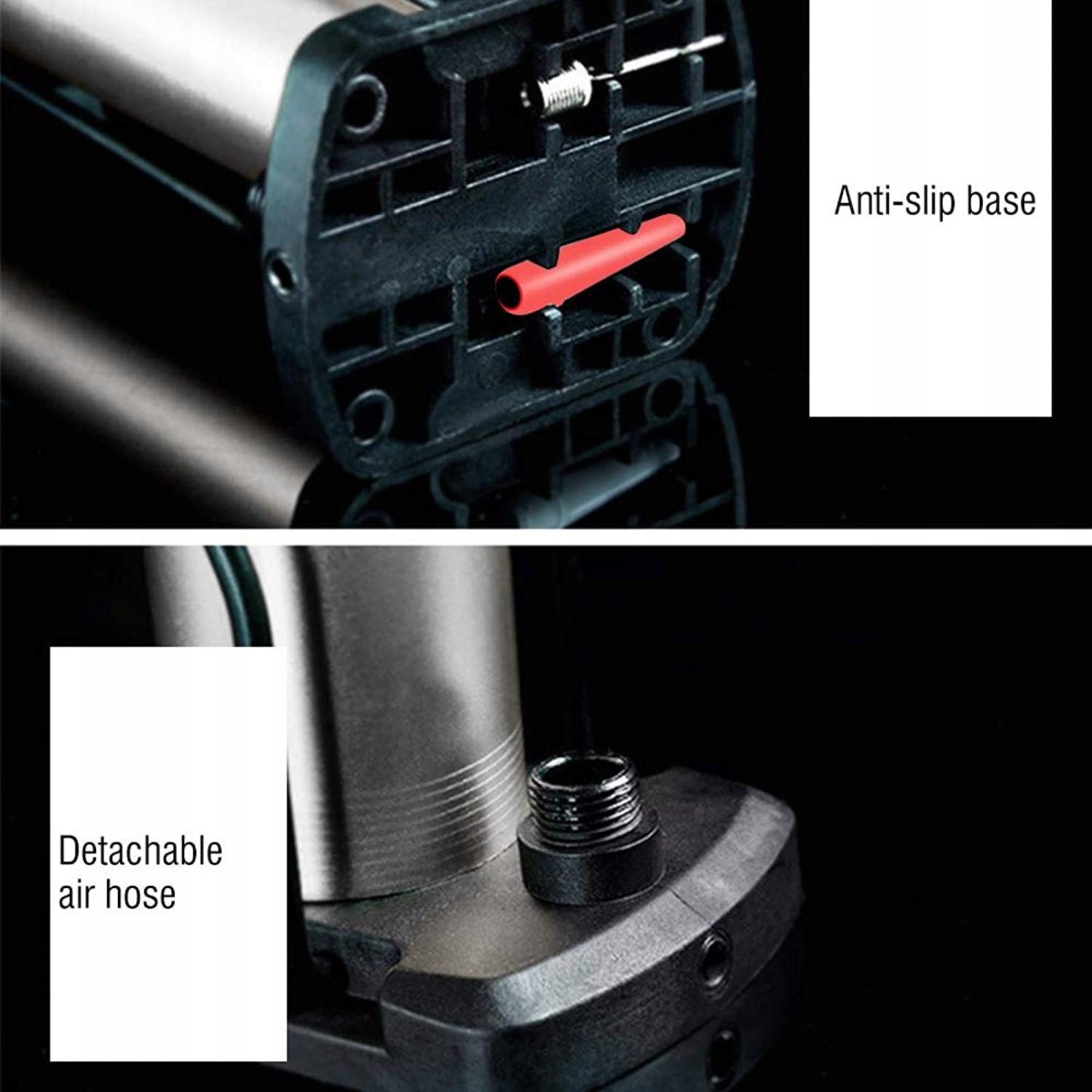 Високоякісний корпус із алюмінієвого сплаву міцний, стійкий до тріщин і довговічний для тривалого використання. Ножна педаль має увігнутий і опуклий дизайн проти ковзання, накачування повітря більш стабільне. Легкий і портативний, його можна розмістити на задній частині багажника, дуже зручно носити. Висока ефективність, більше повітря за хід є хорошою підмогою під час їзди. Підходить для американських і французьких повітряних клапанів, підходить майже до всіх велосипедів.