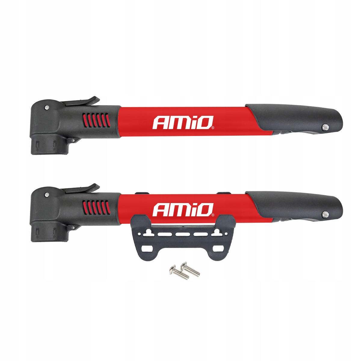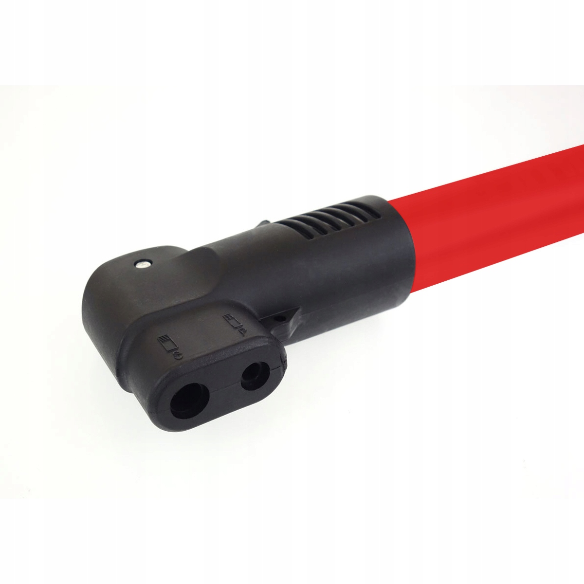 Алюмінієвий велосипедний насос, адаптований до двох типів клапанів (прямий і стандартний автомобільний).