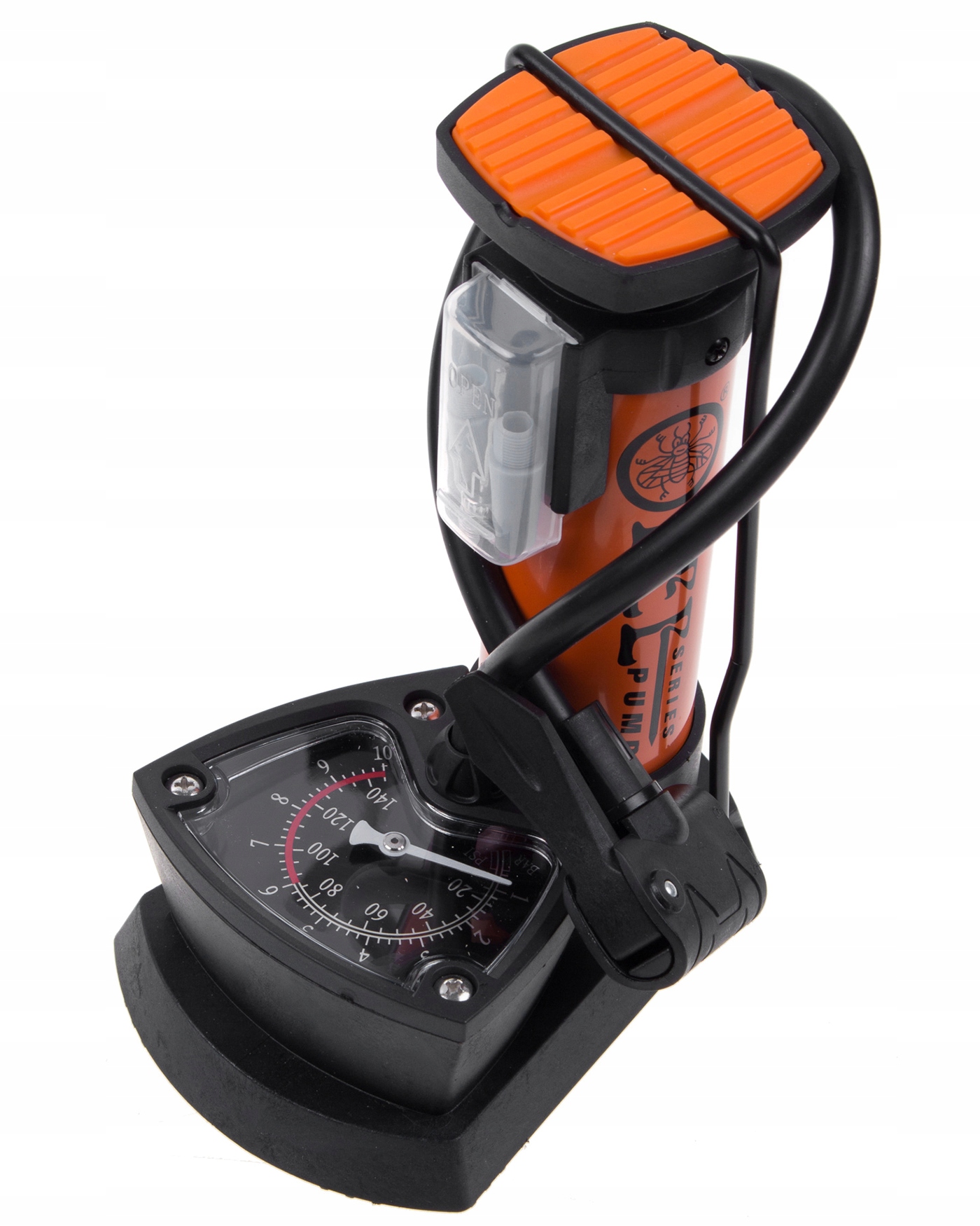 Алюмінієвий підлоговий насос VERSO BEE M43B-01. Насос оснащений точним манометром і шлангом довжиною приблизно 35 мм з напором, який підходить для всіх типів клапанів: AV, DV, FV. Голова також має спеціальний фіксатор для полегшення надування. Широка сталева основа і зручна ручка роблять насос стійким і зручним у використанні. У набір входять 2 наконечника для матраців і кулькова голка. Максимальний тиск насоса – 8BAR.