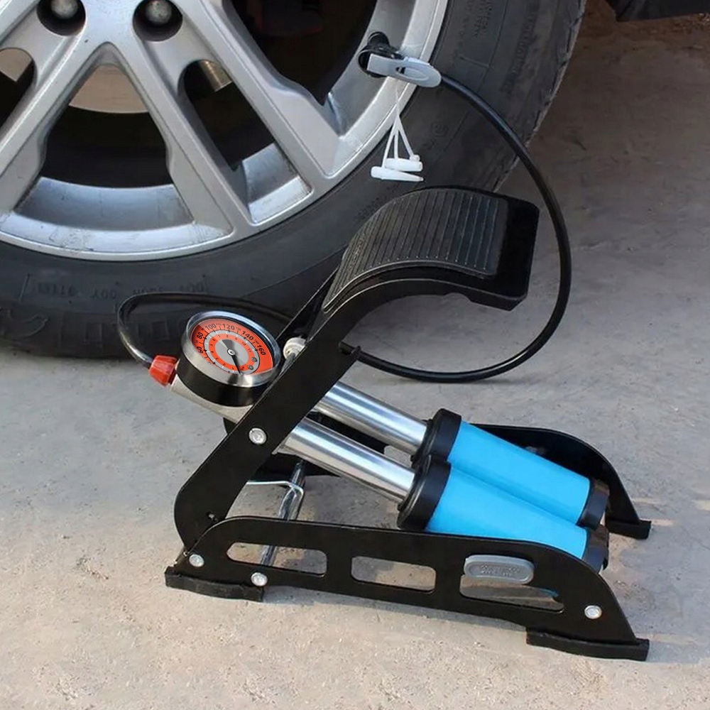 ВЕЛОСИПЕДНИЙ НОЖНИЙ НАСОС КОМПРЕСОР З АВТОМОБІЛЬНИМ МАНОМЕТРОМ ДЛЯ М'ЯЧОГО МАТРАСУ