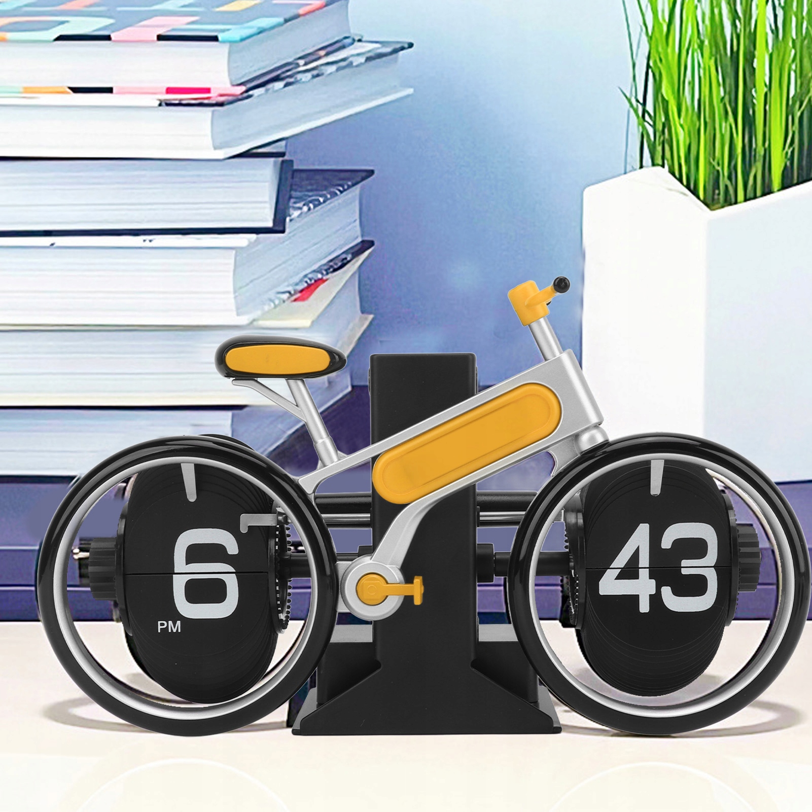 1. Креатив: цей автоматичний перекидний годинник має унікальний і креативний дизайн велосипеда, який додає стильний і декоративний штрих будь-якому столу чи кімнаті.