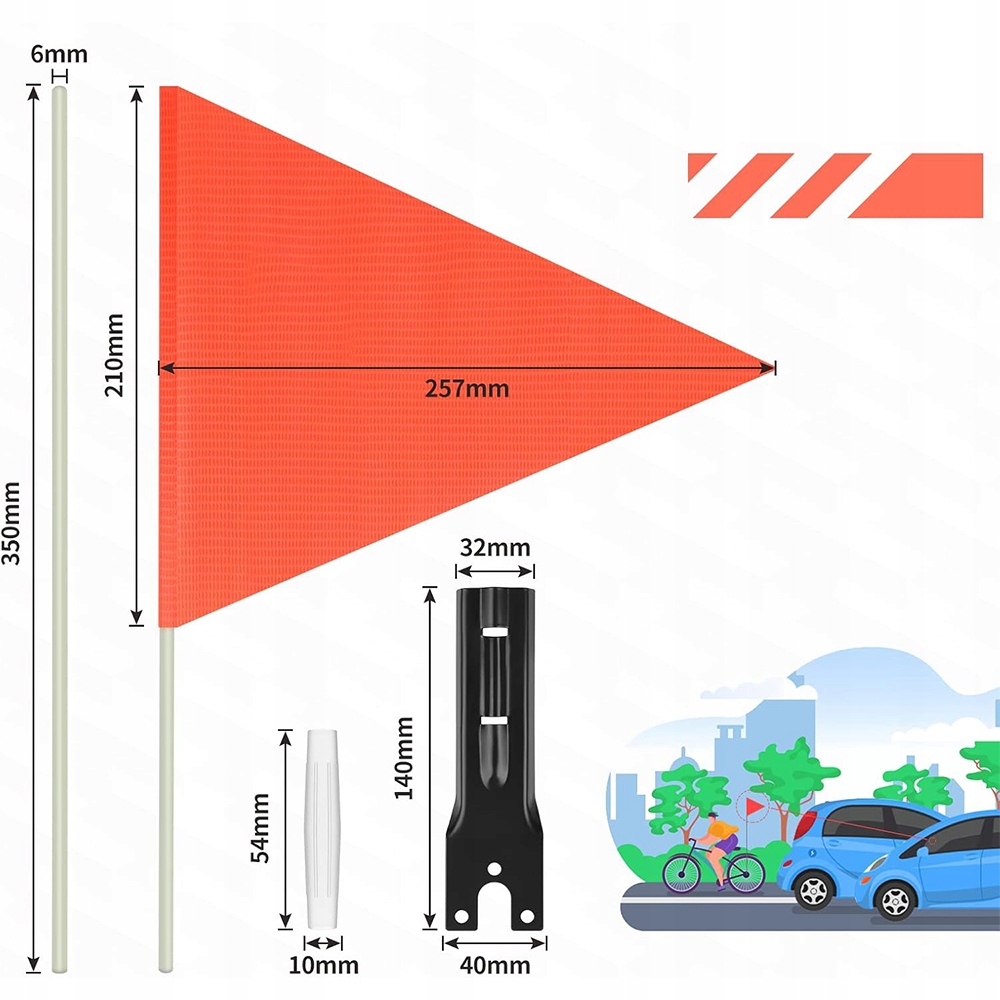 🏡 помаранчевий попереджувальний прапор, висока видимість, універсальна, для велосипедів та скутерів ››
