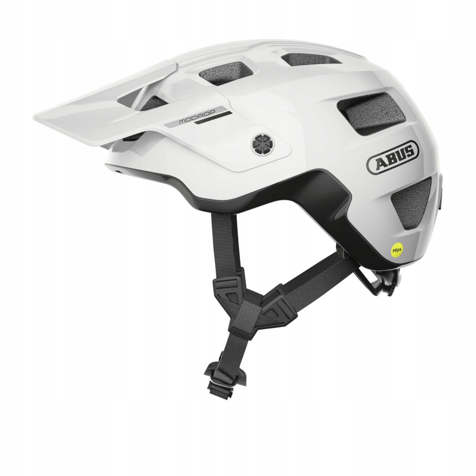 Abus Modrop Mips підходить для кожної області, а для кожного стилю водіння і змушує вас більше. Цей шолом пропонує багато функцій, що збільшують комфорт, оснащені системою регулювання MTB та спліттером ремінця. Під час конвенцій дах з регульованою висотою захищає від гілок. У разі падіння це також може запобігти прямій впливу в обличчя. Він спрямований на захист мозку, особливо коли під час падіння голова велосипедиста потрапляє в землю під кутом. Потім мозок піддається сильних обертальних рухах, які можуть призвести до серйозних травм. У випадку шолома MIPS, рухома пластикова оболонка з низьким коефіцієнтом тертя інтегрується з шоломом для забезпечення зменшення обертання та кращого захисту голови. Шолом