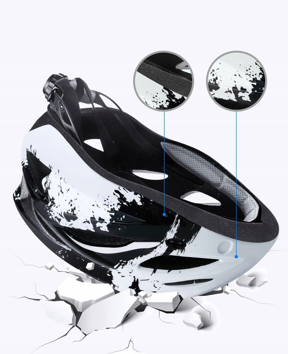 Цей велосипедний шолом виготовлений з твердої та міцної оболонки ПК та внутрішньої оболонки EPS з високою щільністю, яка поглинає удари, захищаючи голову. Крім того, ви можете насолоджуватися нашою прихильністю до забезпечення задоволеності клієнтів завдяки нашій групі підтримки. Додайте до кошика зараз і йдіть, не хвилюйтеся!