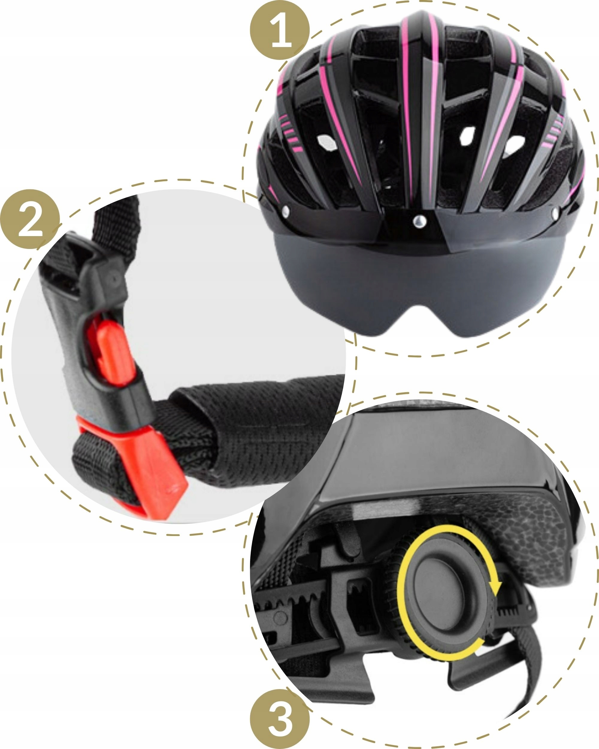 Велосипедний шолом з окулярами, що регулюється світлом чорний рожевий велосипед 54-62 см