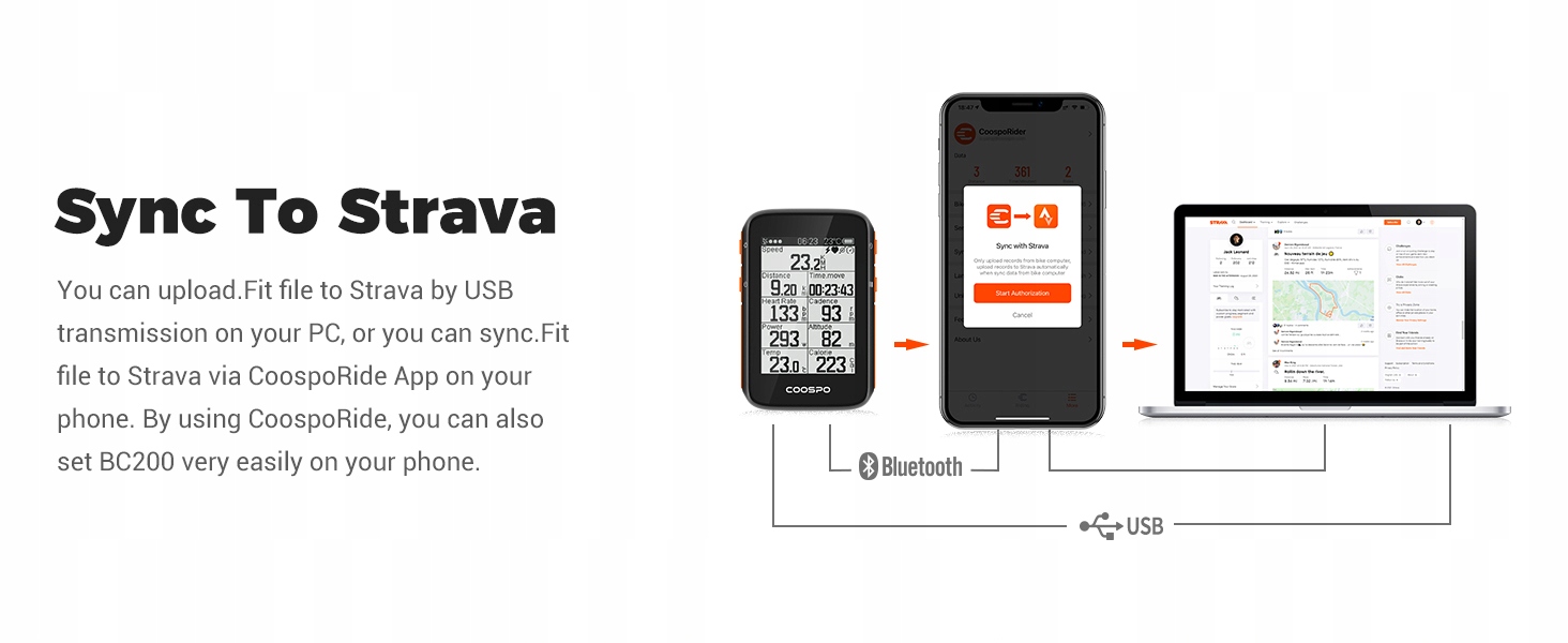 ✅Синхронізувати зі Strava – ви можете використовувати як основний файл. Підігнати до Strava, вимкнувши USB на комп’ютері, або ви можете синхронізувати файл Fit. до Strava через програму CoospoRide на телефоні через Bluetooth. За допомогою програми CoospoRide ви також можете швидко ввімкнути велокомп’ютер CooSpo BC200/BC107/BC26, яким я користуюся.