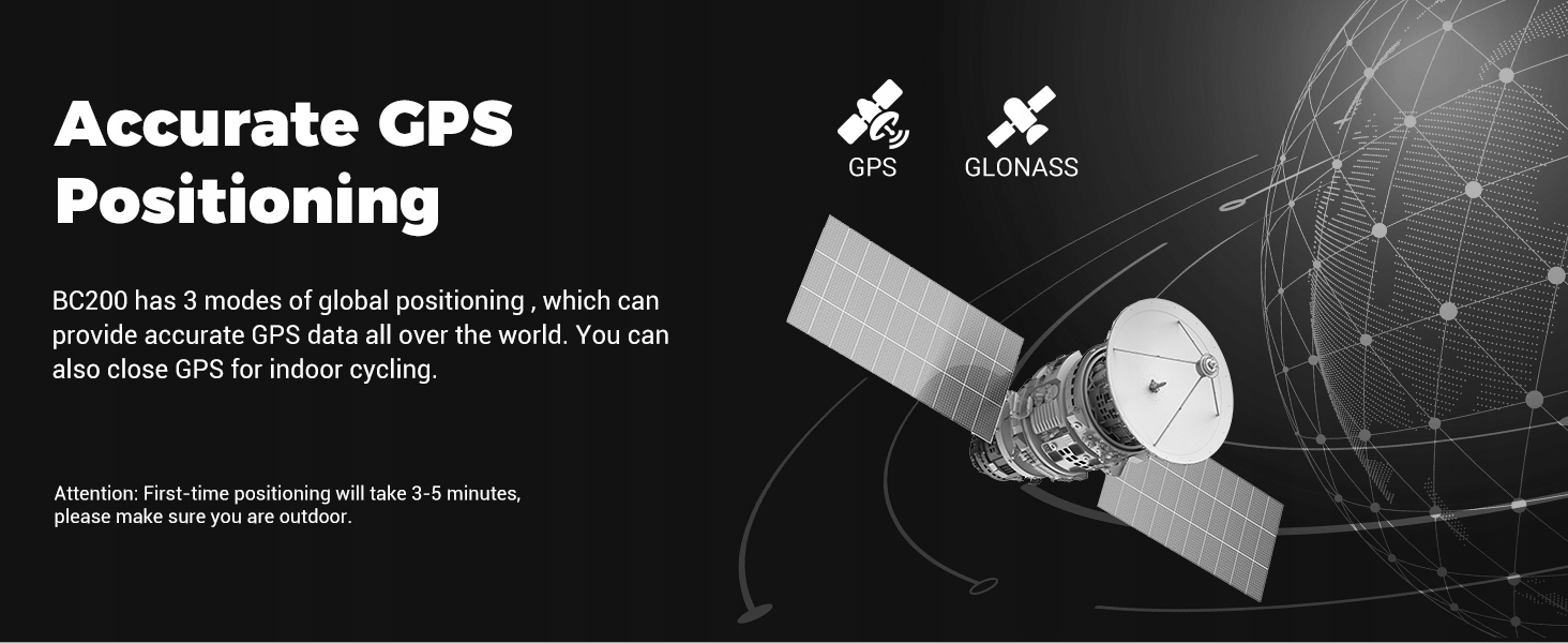 ✅ Точне позиціонування GPS-BC200 має 3 режими глобального позиціонування, які можуть бути частиною даних GPS під час їзди на велосипеді. Велосипедний комп’ютер BC200 GPS також дозволяє вам входити в станцію, коли GPS увімкнено. Примітка: визначення позиціонування під час першого використання 3- 5 хвилин.