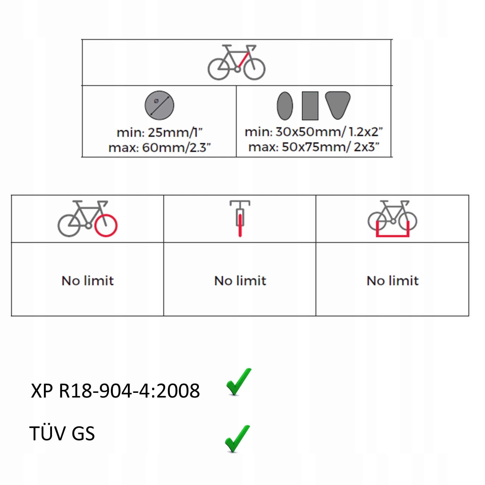 Для перевезення всіх типів велосипедів (чоловічі, жіночі, дитячі, гірські, електричні, фет-байки) з рамою діаметром 30 - 70 мм і висотою шини з ободом 22''- 29".