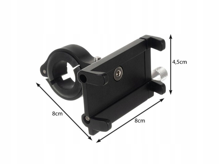 СПЕЦИФІКАЦІЯ - колір: чорний; матеріал: алюміній / силікон; призначений для телефонів від 57 мм до 110 мм; діаметр керма: 22,2-31,8 мм; ширина ручок: від 5,7 см до 11 см; розміри гуми: 11 х 5,5 см; розміри (довжина/ширина/висота): 4,5x8x8 см; вага набору: 0,089 кг; вага з упаковкою: 0,098 кг.